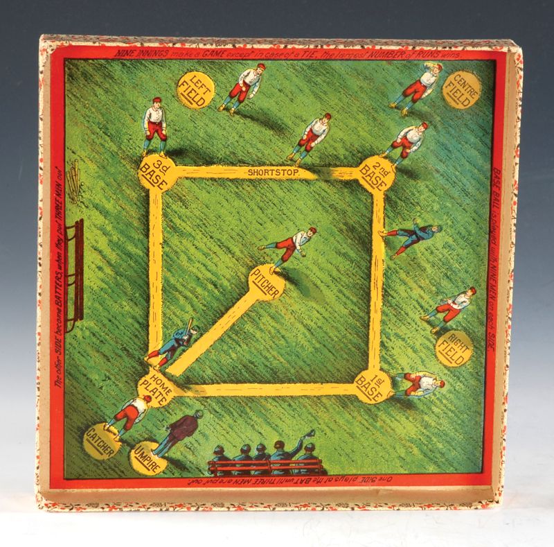 And sometimes we're just inexcusably lazy in our research. Thanks for getting us off our keesters and prompting us to take a closer look at our McLoughlin files. Again, we haven't seen these die-cuts actually included with any McLoughlin game -- but as far as we can tell without being hands-on, the artwork of your die-cut player-figures is identical (except for color) to the players illustrated on the playing field of McLoughlin's circa 1892 Base Ball Game. So unless our eyes deceive us, we can say that your die-cuts are in fact definitely a McLoughlin product. Whether they (and the game itself) date to precisely 1892 or a few years earlier or later we don't yet know. http://i40.photobucket.com/albums/e2...d.jpg~original http://i40.photobucket.com/albums/e2...0.jpg~original |