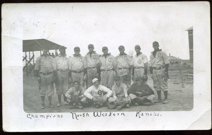 Wondering if anyone knows anything about the team in the RPPC. The message from one of the players pictured, "Elmer", notes that they are the Colby Baseball team and champions of Northwestern Kansas. Posted in 1911. Not sure if this is worth anything?