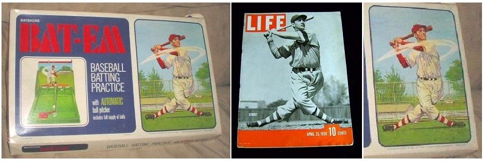Not a card, so apologies if this isn't appropriate for this thread, but the topic instantly put us in mind of former AAA star  and part-time Dodger JT Winsett, whose image on the cover of the April 25, 1938 edition of Life was recreated for the box lid of Bat-Em, a late-1960s game by Bayshore Industries: http://i40.photobucket.com/albums/e2...r.jpg~original Looks painful... Winsett's actually an interesting and rather amusing story: http://sabr.org/bioproj/person/fd8d4931 |