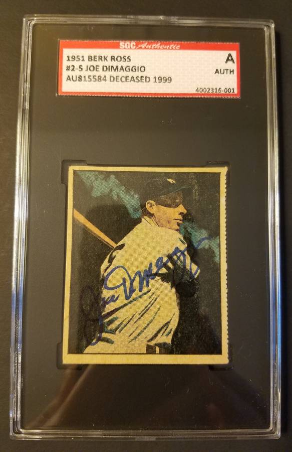 I saw this 1951 Berk Ross DiMaggio at a show this morning. It's slabbed and authenticated by SGC. I'm not an autograph guy at all, but this one just spoke to me for some reason. Was hoping to get a quick price opinion. I see lots of completed eBay sales, but mostly for post-career cards and balls. Thanks in advance to anyone who can help! This is for me, not a flip.