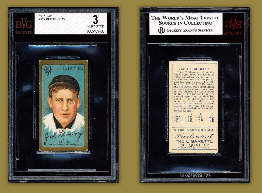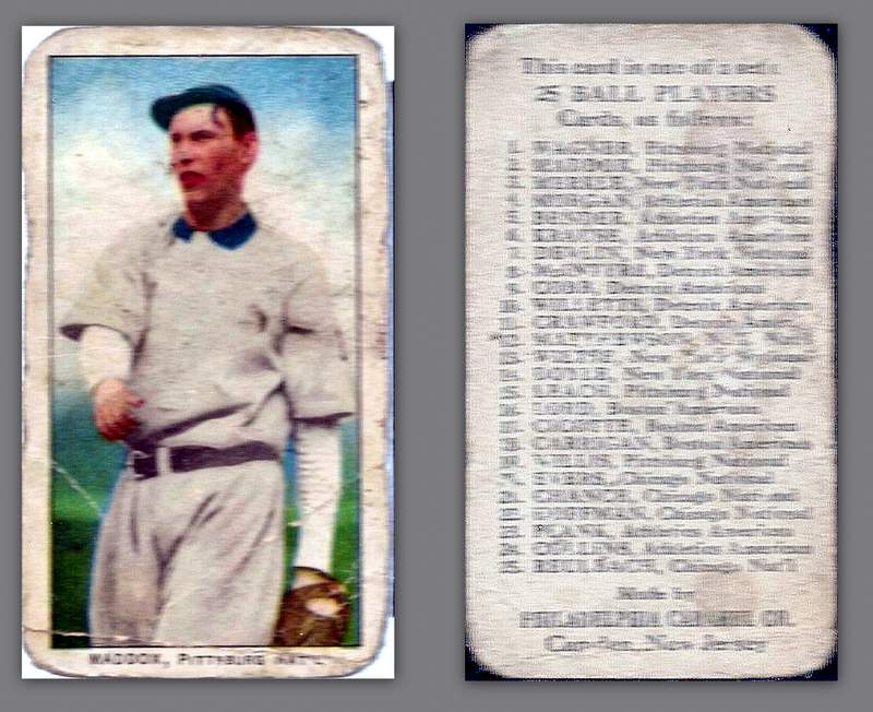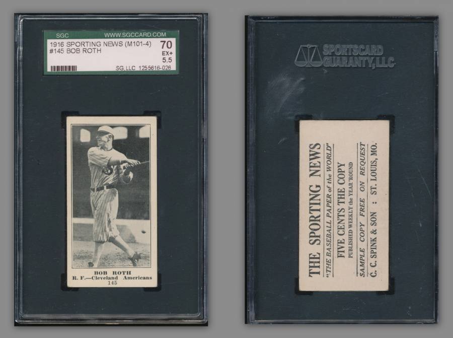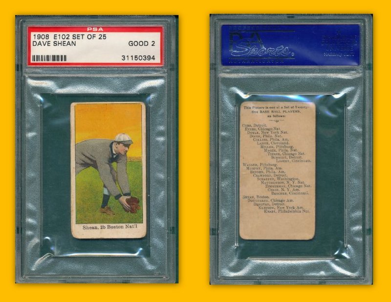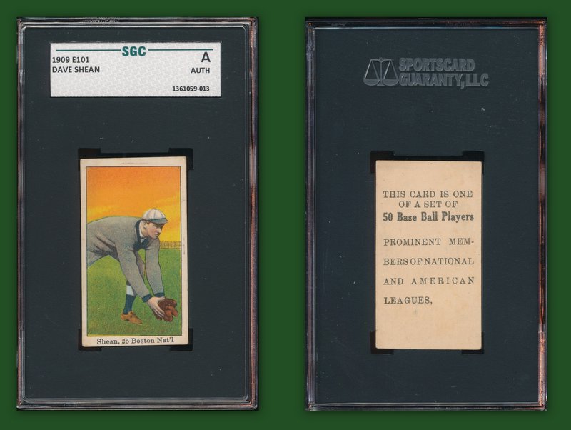 https://www.collectorfocus.com/image...90-1-tannehill This card qualifies for 1 Kraken Number point.:eek: 2. Leeford Tannehill T207 SGC 30 Recruit back $28.00 shipped https://www.collectorfocus.com/image...-tannehill-207 This card does not. 3. Dave Shean E101 SGC A one of fifty $42.00 shipped https://www.collectorfocus.com/image...400/e101-shean The first of three cards offered today for Shean back run collectors. 4. Dave Shean E92 Dockman SGC 30 $44.00 shipped https://www.collectorfocus.com/image...-dockman-shean The second of three cards offered today for Shean back run collectors. 5. Dave Shean E102 PSA 2 one of 25 in this series $49.00 shipped https://www.collectorfocus.com/image...695/e102-shean The third of three Shean cards offered today. If you are not a Shean collector, you could be. 6. Nick Maddox E95 SGC 20 Philadelphia Caramel $39.00 https://www.collectorfocus.com/image...621/e95-maddox 7. Red Murray T205 BVG 3 Gold Borders;) $39.00 SOLD https://www.collectorfocus.com/image...s/10745/murray centering acceptable to most discriminating collectors. 8. Harry Howell E92 Nadja SGC 40 follow thru pose $88 SOLD https://www.collectorfocus.com/image...ll-follow-thru 9. Babe Ruth Not, actually Bob Roth, his consonant cousin M101-4 Sporting News reverse SGC 70 $60 shipped https://www.collectorfocus.com/image...50/roth-m101-4 The missing holders not shown on a couple of the scans are in fine shape. |