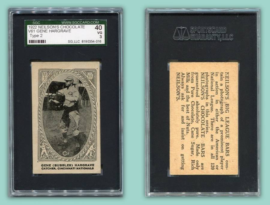 https://www.collectorfocus.com/image...1/e101-bridwel Gene (Bubbles) Hargrave - V61 Neilson's Chocolate Type 2 - SGC 40 - $36 https://www.collectorfocus.com/image...grave-neilsons Babe Ruth with Schmelling - 1932 Bulgaria Sport Photos - BVG 3.5 - $175 https://www.collectorfocus.com/image...der/66374/ruth William Cissell - 1933 Tattoo Orbit R305 - SGC 40 - $39 https://www.collectorfocus.com/image...3-cissell-r305 Bob Bescher - M104-4 - #15 - SGC 84 - (Blank Back) - $124 https://www.collectorfocus.com/image...-blank-back-sn Cy Morgan - E95 - Philadelphia Caramel - SGC 10 - $36 https://www.collectorfocus.com/image...r/66373/morgan Once each card is sold it will be replaced by another in this thread, so keep watching. You never know what might show up here. Despite the grades centering is outstanding for the most part. All pricing is net to me and includes shipping. Prevent remorse, buy today |