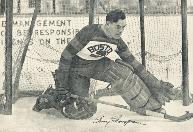 The problem I see, is that Clapper wore #5 for the Boston Bruins, and he was right-handed (and the photo shows the player with a left-handed grip). The photo can't be reversed, as the "B" on his shoulder is correctly oriented. This makes me wonder if the photo actually shows Clapper. One more problem is that the jersey the player is wearing appears to be the Bruins' 1935-38 style, according to nhluniforms.com. 1935 appears to be the first year they had the number on the front, and a "B" on the sleeve. It could be related to the "Beehive" photos that were issued in the 1930s and 1940s. Steve