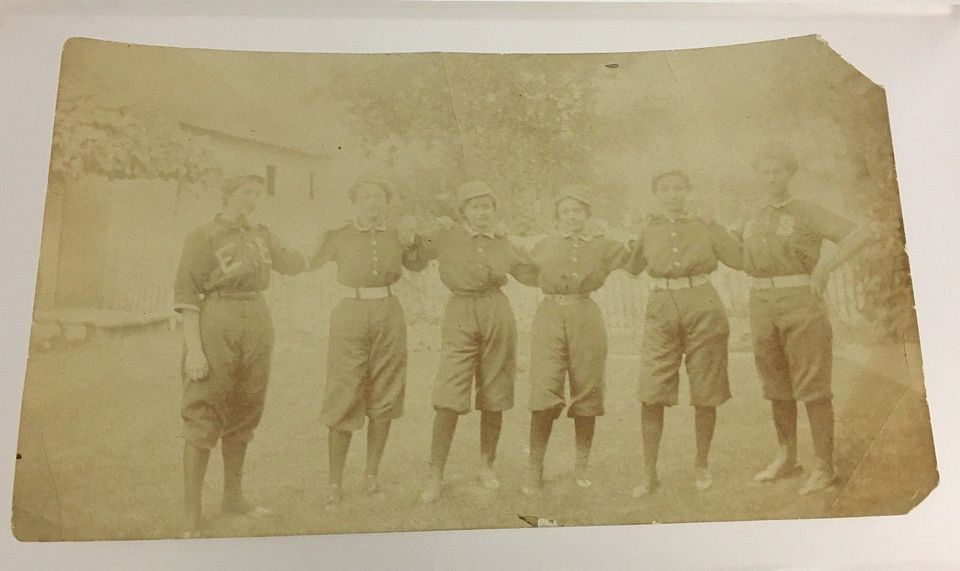 Lady playing catch in full uniform. Dated 1898. My oldest snapshot.