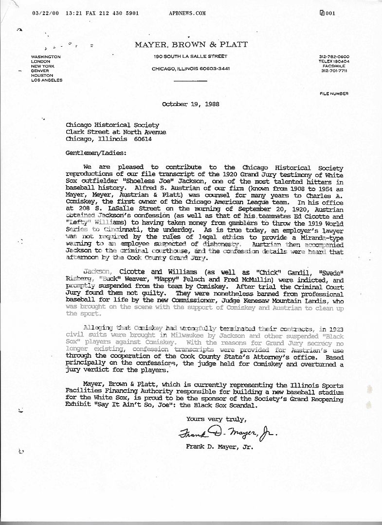 Thomas, really like the 1942 Sporting News. It`s the different type items like yours that make Jackson collecting so interesting. Enclosed is a Joe Jackson/Ray J Cannon 1951 correspondence. Cannon mailed Joe this letter and enclosed some old campaign material. Cannon was an attorney for the White Sox during the 1919 trail and he represented Joe when he in turn sued C Comiskey for monies withheld as a result of the scandal. An aside, maybe foreshadowed in the note, both Joe and Cannon died within the next 9 months.
