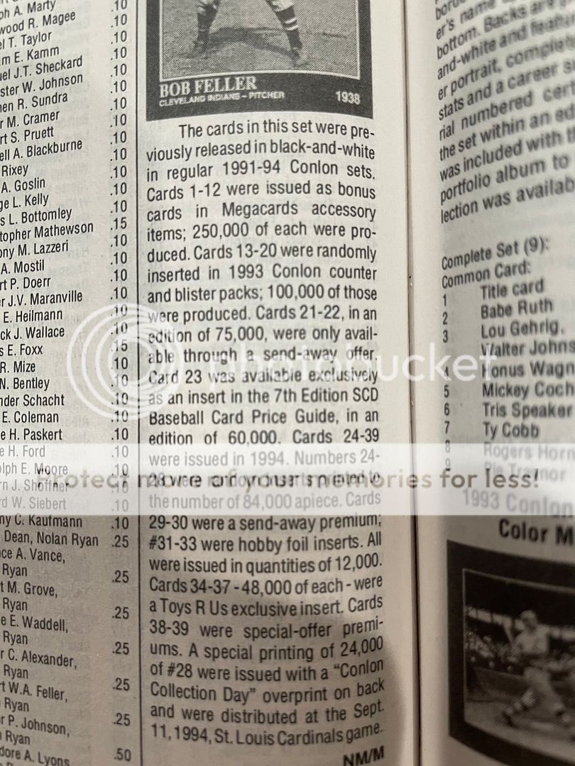 eddie--I did the Conlon Collection ( Mega Cards and The Sporting News) sets 1991 to 1995. In one of their 1995 sets they did interpose some Ken Griffey Jr images. I also have a Mega Cards Conlon based Ruth only set in 1992. Also did The Sporting News Conlon based sets in 1981, 1983 and 1984.