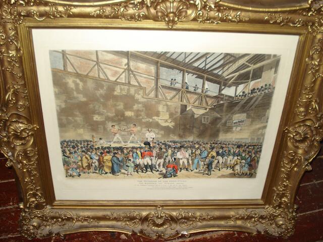 Randall did perform a lot of sparring exhibitions and benefits with gloves on. That image was basically lifted and transposed from this 19th Century print, purportedly showing Randall and Turner giving an exhibition at the Fives Court. Randall and Turner did fight, but it wasn't there, and it certainly wasn't in an elevated ring with gloves on.   |