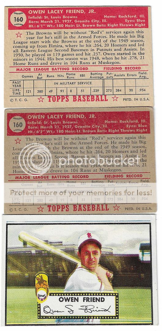 I am early on this one but leaving for Park City early tomorrow to get out of the Texas heat. Owen is another example of a player on a 52 card who did not play in the majors in 52, although in his case it was due to military service. I wanted to post it because of the eye a peel of the 3d card