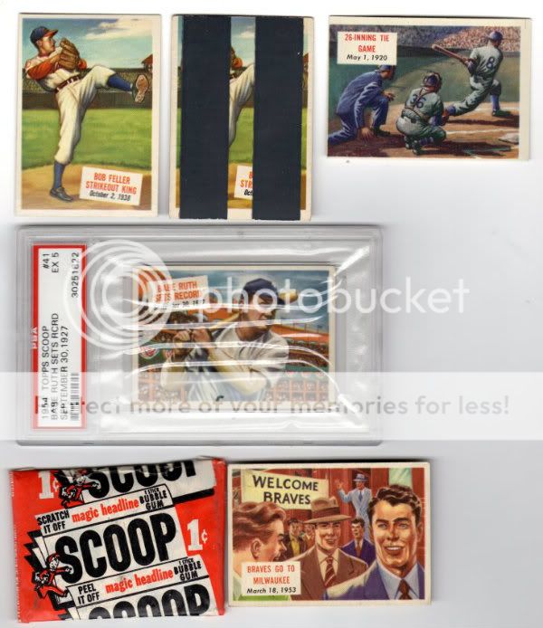Feller in the Topps Scoops baseball subset, both scratched and unscratched. Plus John Travolta welcoming the Braves to Milwaukee in 1953 :-)