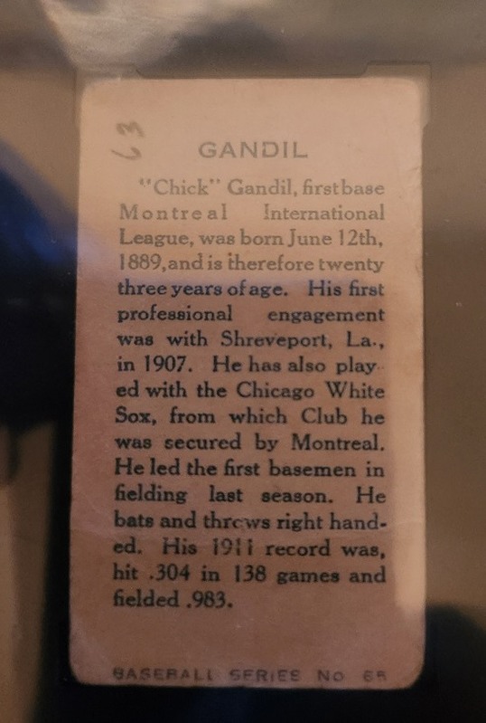 FS: 1912 C46 Imperial Tobacco - Chick Gandil SGC 1: $450.00 + 10.00 Shipping PPFF or add %3 for GS