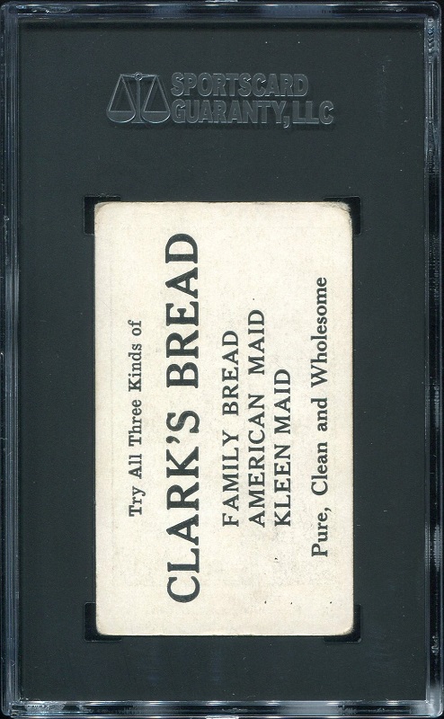 This E102 caramel card does not technically have an ad back (if it did identify the manufacturer on the back, then for crying out loud we would know who put out this set!), but it does have a neat cascading of player's names on its checklist. I always wondered about the decision to unequally place 11 names on top, 9 in middle and 5 on the bottom. I would guess it was due to length of player's names/teams...?