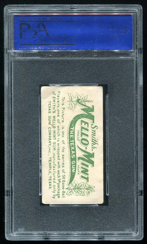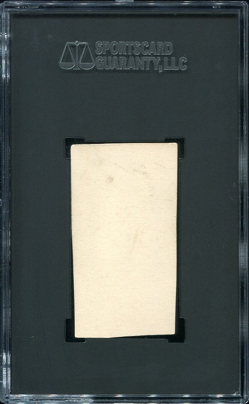 I have always wanted a great looking CJ Cobb without breaking the bank and this card has more than surpassed what I ever expected to find. This card has four sharp corners, near perfect centering and bright bold beautiful colors and fits like a glove in the holder. The card was taken from a scrap book and has just a small minor area where the print and card back was lightened when removed from the book but doesn't show even a trace of paper loss. I was actually surprised it received an altered label because it's an extremely small area on the back where just six letters appear to have been lightly traced over leaving a slightly green hue. I thought this could have possibly even garnered a numerical grade with a MK qualifier. With the amount of card doctoring that has taken place in the hobby, i would much rather have a beautiful example like this rather than a questionable card sitting in a high grade holder at a hell of a lot higher price. |