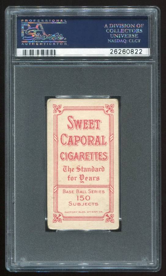 Sweet Caporal backs can be sneakily tough. I had fun checking through my T206 cards and found 3 cards with PSA population of 3 each. I didn't check SGC (is their pop report working now?), but also it might be noted that these are all raw, so there are probably plenty of tougher ones still flying under the radar. By checking the PSA website, it certainly appears Factory 25 in both the 150 and 350 Series have multiple examples of cards with 9 or less examples graded.