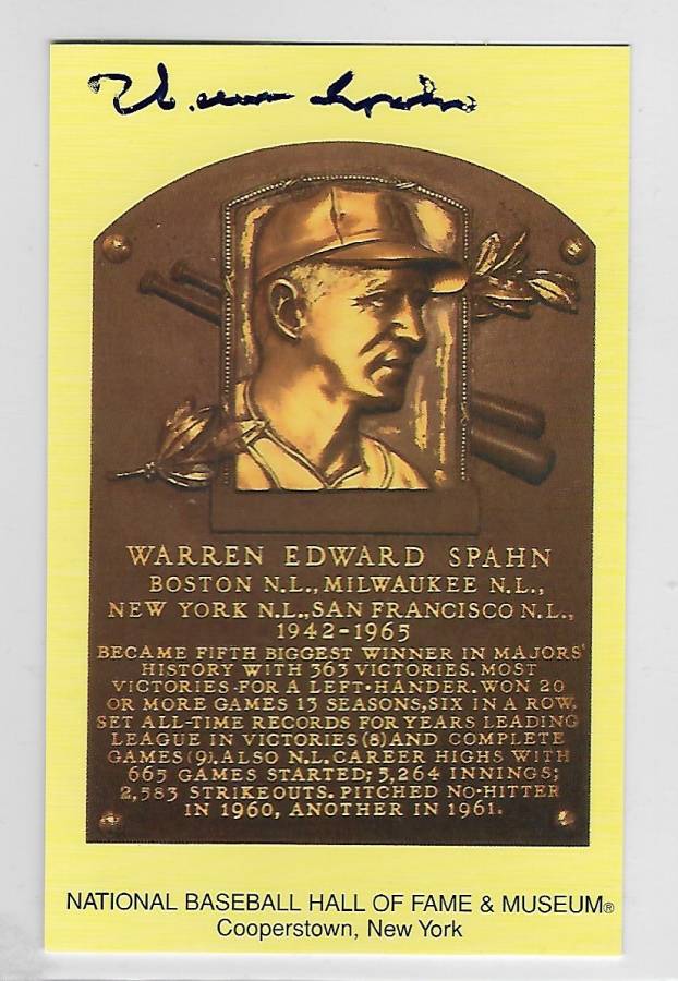 Here's my Warren Spahn HOF postcard signed in person July 2003. He died in November of that year: