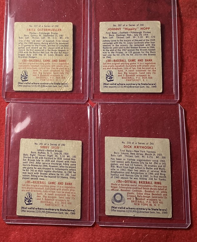 Default Lot of 4 raw 1949 Bowman High Numbers