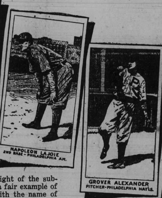 Thanks for posting Todd! Any chance you are able to share a cleaner image of the newspaper article/photo? Would be curious to see how Lajoie Card team name etc reads..  I have a Lajoie M101 no number with hands on knees pose. Maybe Lajoie is a democrat after all !!!