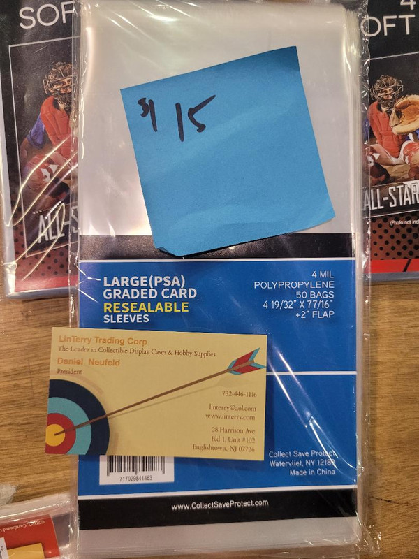 There are of course lots of other choices if you don't have to have the "perfect fit" precision. Cardboard Gold, and possibly even another supplier makes the ones with the PSA logo at the bottom. And UltraPro makes and has always made a wide variety of sleeves and bags for everything under the sun, albeit with much less than a "perfect" fit.