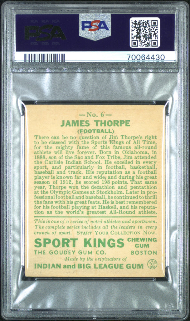 | 1933 Goudey Sport Kings Jim Thorpe #6 SGC 70 | sycks22 | 1920 to 1949 Baseball cards- B/S/T | 2 | 05-17-2015 05:28 PM |