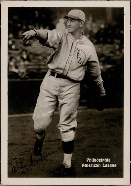 There is also listed a 10th player unknown in the R316 Kashin set, a "O'Hurst", but I believe this was an erroneous misspelling in the lot description, as there is a card of player Frank "Hurst" in the R316 Kashin set. Heritage did fortunately at least provide an image of the Mickey Cochrane card, one of 9 unknown, as is seen below: